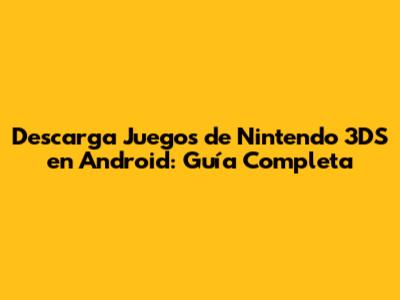 Descarga Juegos De Nintendo 3DS En Android: Guía Completa