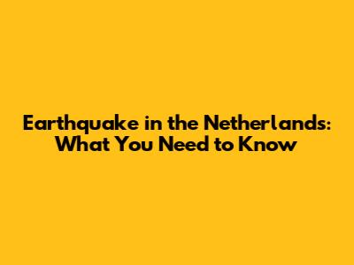 Earthquake In The Netherlands: What You Need To Know