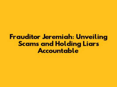 Frauditor Jeremiah: Unveiling Scams And Holding Liars Accountable