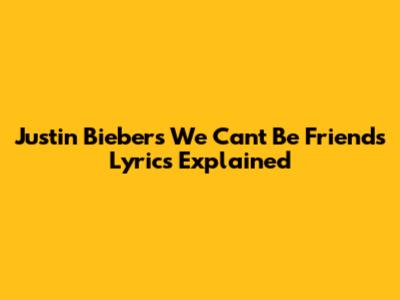 Hey guys! Ever get that feeling when a song just hits you right in the feels? Well, Justin Bieber's latest track, "We Can't Be Friends," is doing exactly that for a lot of people. It's a super emotional tune that dives deep into the complexities of relationships, particularly that awkward, painful stage where you realize you can't go back to being just pals after things have gotten more intense. This song isn't just about a breakup; it's about the aftermath, the lingering thoughts, and the tough decision to put some distance between yourselves. So, let's break down these lyrics, shall we? We're gonna unpack the meaning behind Biebs' latest heartbreak anthem and see what makes it so relatable.