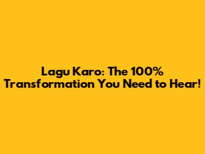 Lagu Karo: The 100% Transformation You Need To Hear!