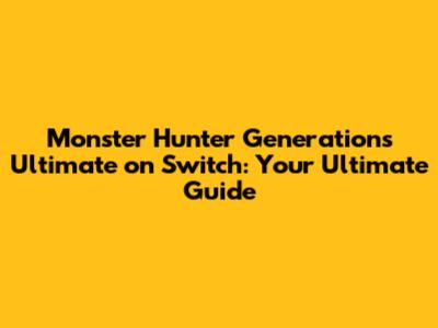 Monster Hunter Generations Ultimate On Switch: Your Ultimate Guide