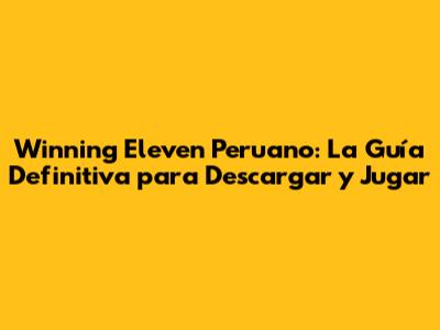 Cómo Descargar Winning Eleven Peruano: Guía Paso a Paso